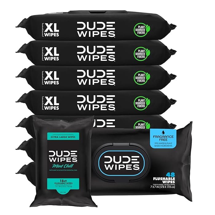 Vær den første til at anmelde “DUDE Wipes Stool Kit- 9 Packs, 432 Flushable Wipes — Mint Chill, Shea Butter, & Unscented – Extra Large & Septic Safe”
