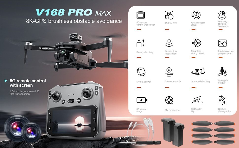 30 reviews for 2025 new Drone with 4.5″ Screen, GPS, 360° Rolling, Dual Cameras, Foldable Design, 2 Batteries | Brushless Motor, Gesture Control, Remote Control Toy, 200m Range & 200m Altitude, Modern Drone Design, Stable Flight Techno