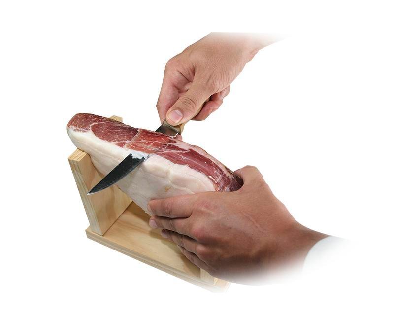 El set incluye un soporte peque?o pero muy estable, no se mueve mientras se corta el jam¨®n.