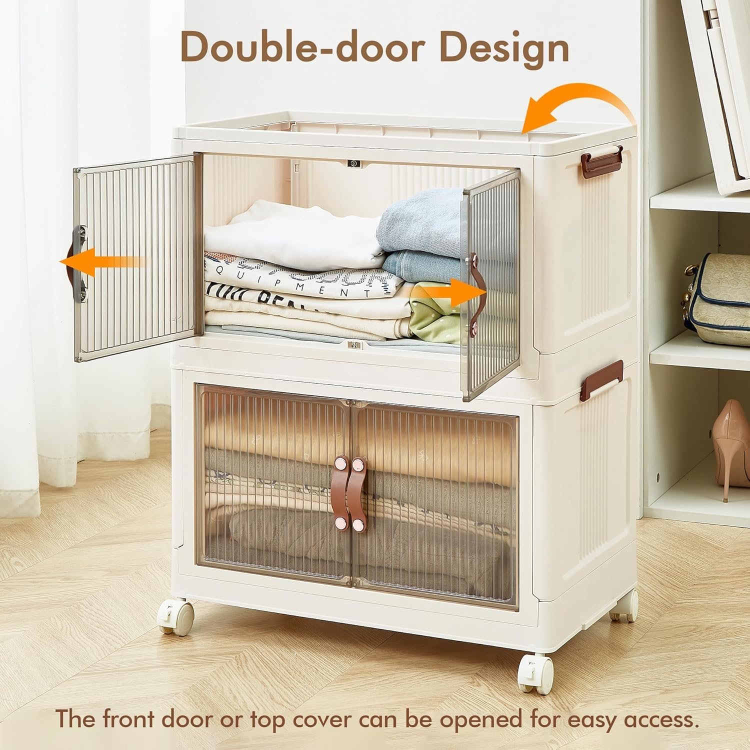 ONAIL Foldable Storage Bins 128QT with Lid, Magnetic Doors & Lockable Wheels, Stackable storage Boxes for Living Room, Office, Kitchen, Dorm
